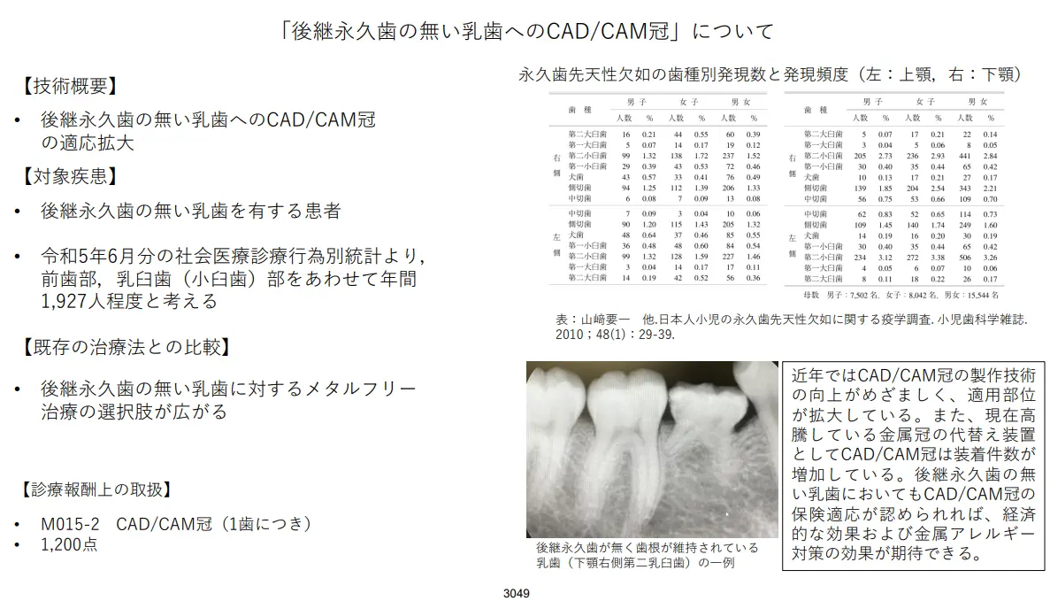 後続永久歯の無い乳歯へのCAD/CAM冠の適応拡大