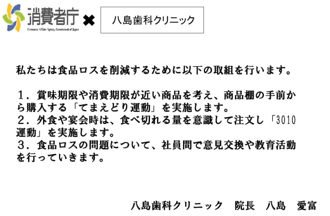 2024/9/13 食品ロス削減宣言 参加事業者として消費者庁HPに掲載されました。